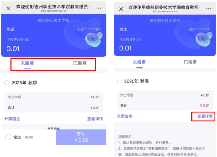 7.查询记录:您可在“已缴费”页签下查看所有历史缴费记录,点击“查看详情”可获取详细信息。